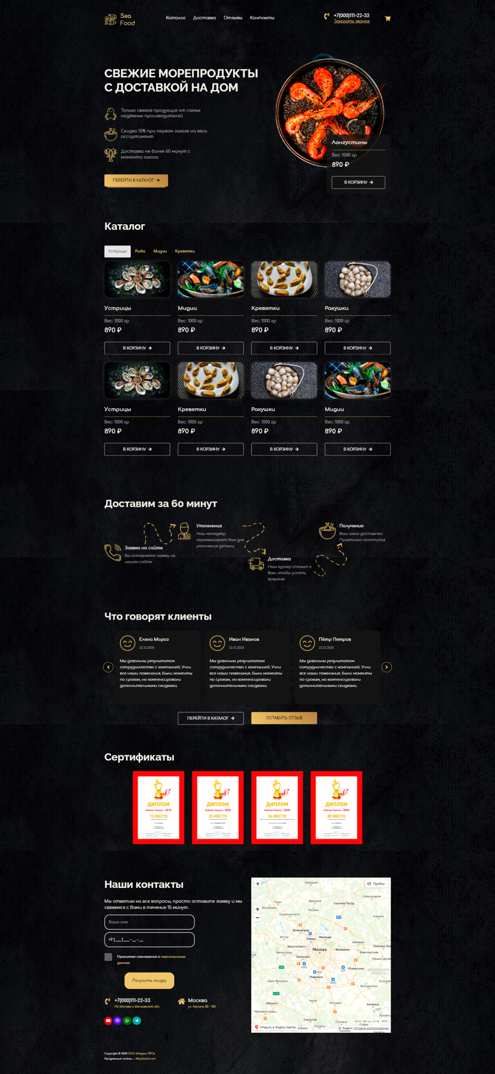 Закажите готовый продающий сайт лендинг #0422205 в Барановичи за 1-3 дня «под ключ»: свёрстан, отрисован и готов к рекламе. Тематика шаблона «Доставка морепродуктов на дом».
