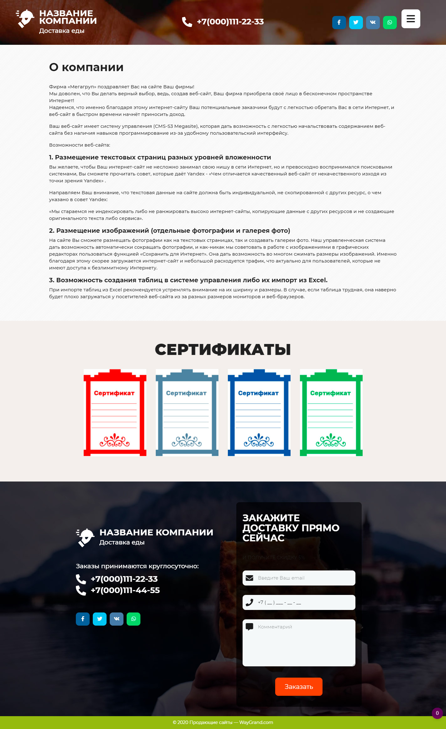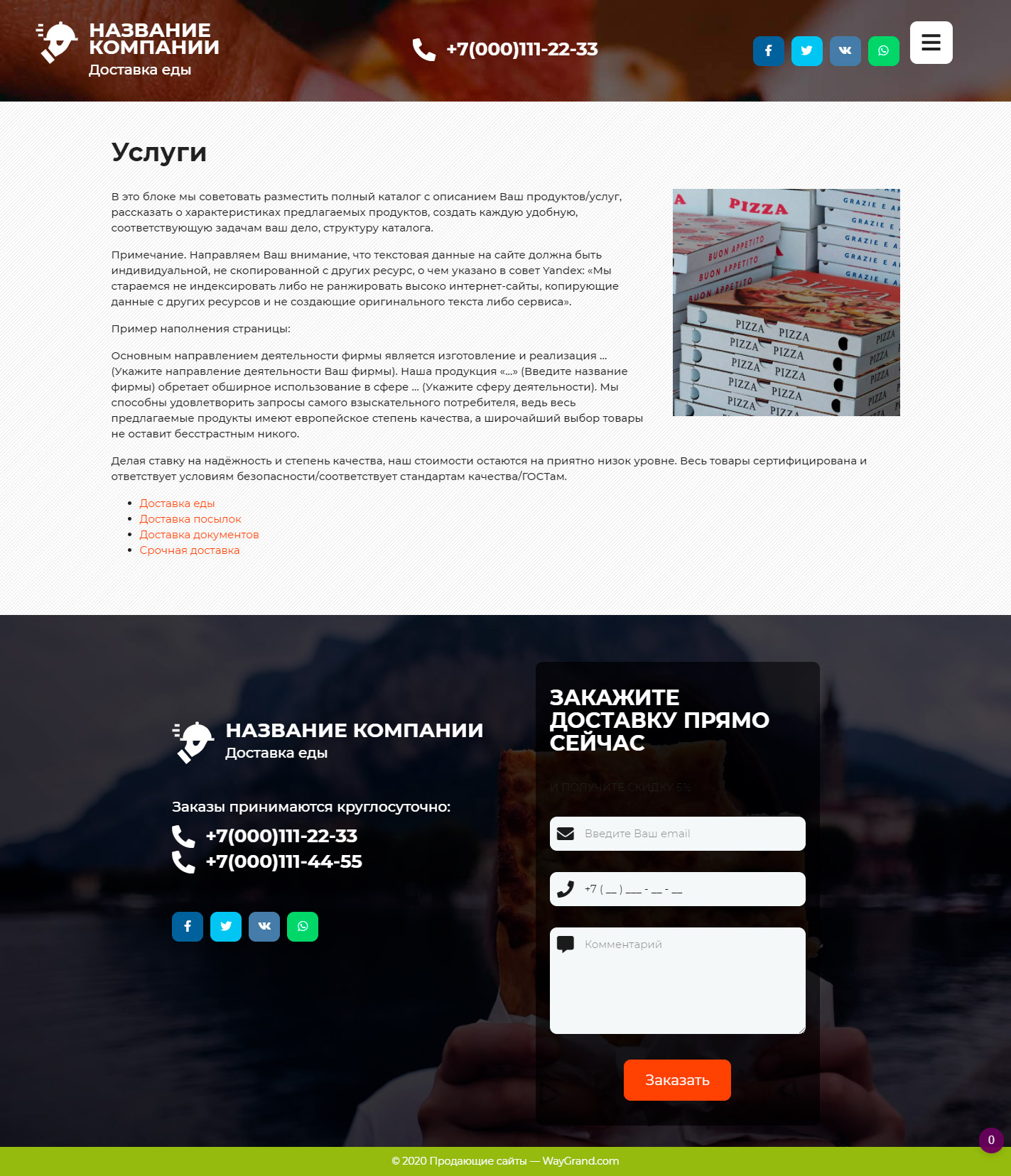 Готовый сайт визитка Курьерская доставка еды #3071302 — Купить на WayGrand.com в Барановичи