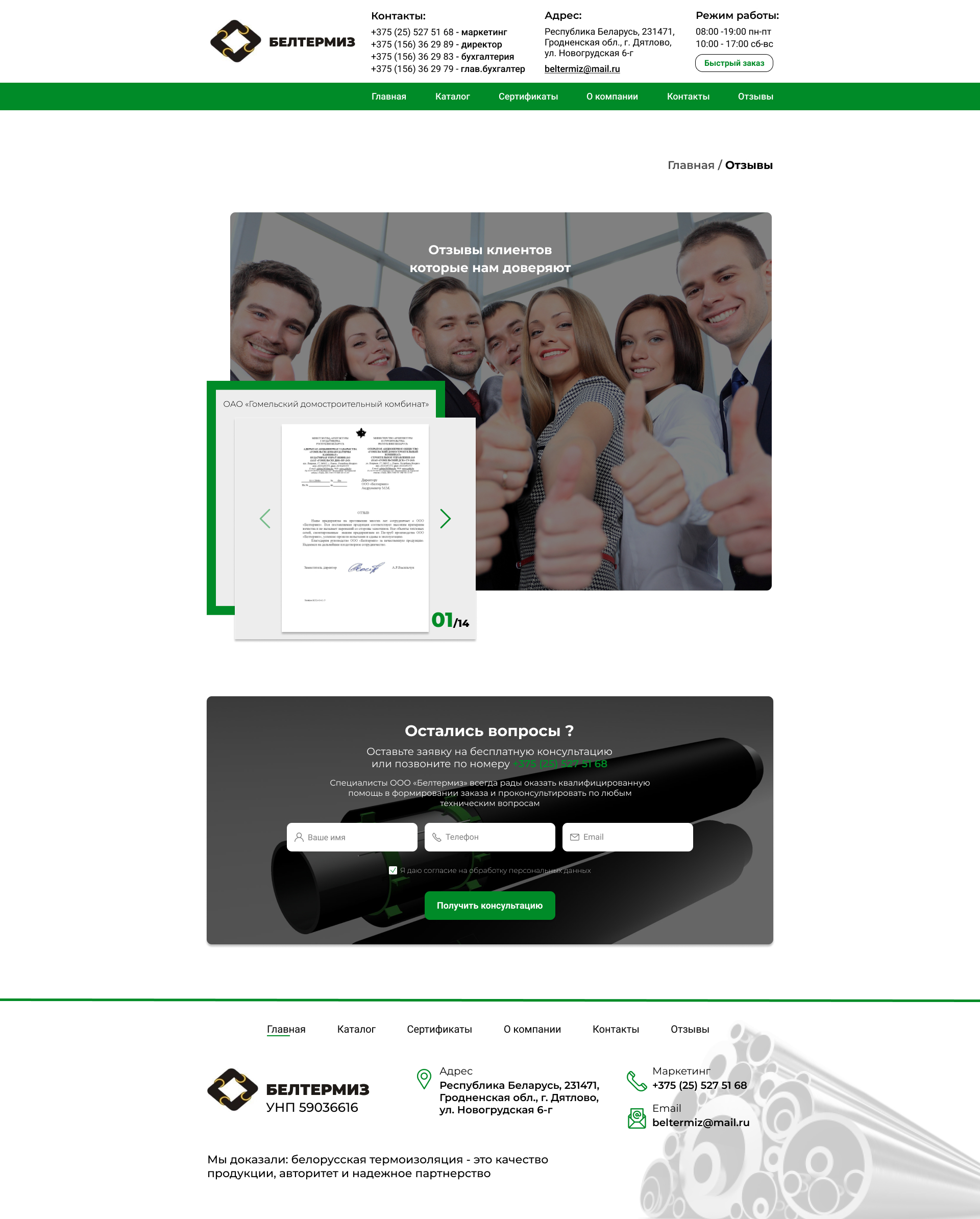 Закажите готовый продающий сайт визитка #141 в Барановичи за 5-7 дня «под ключ»: свёрстан, отрисован и готов к рекламе. Тематика шаблона «Производство ПИ-труб».