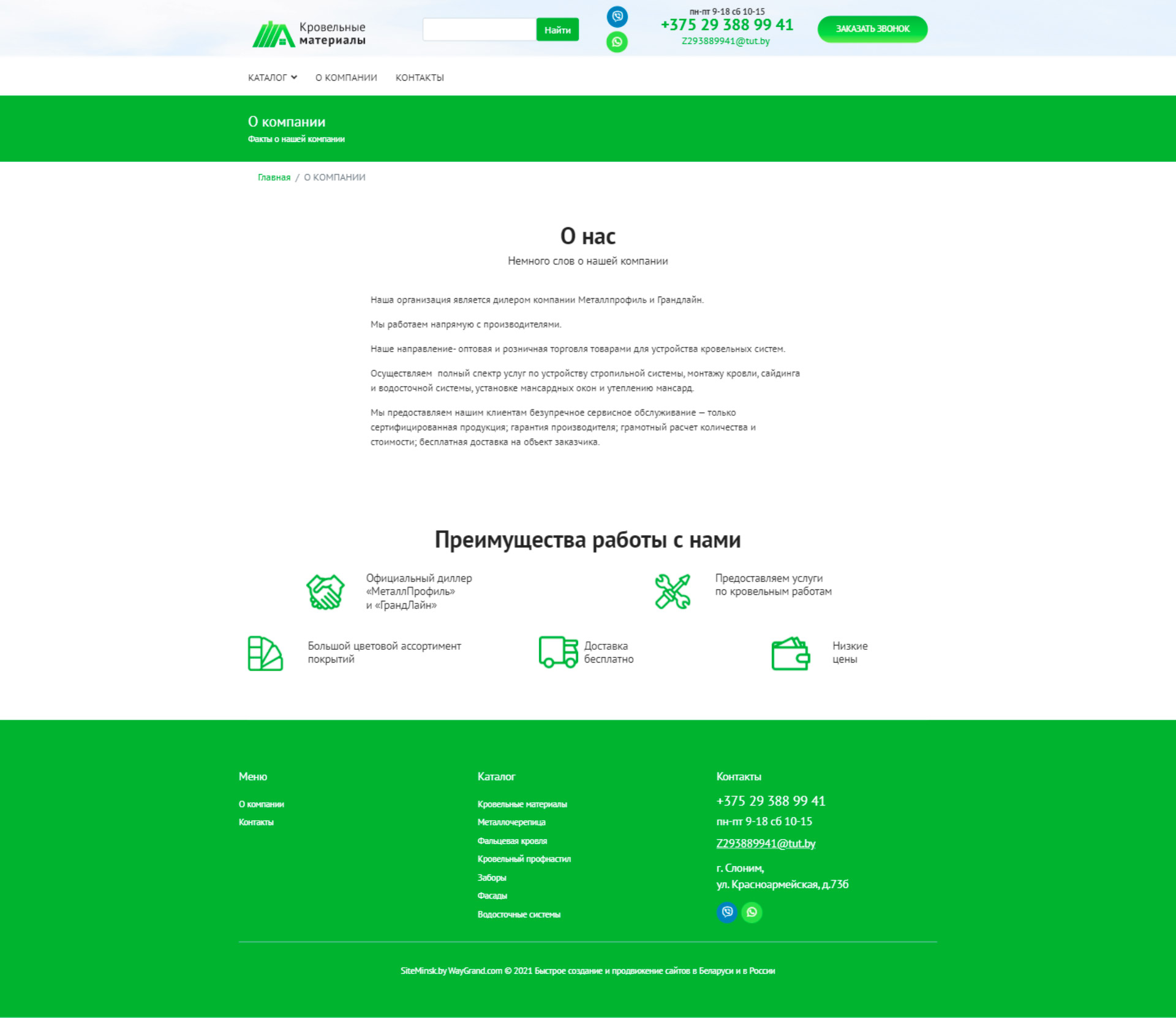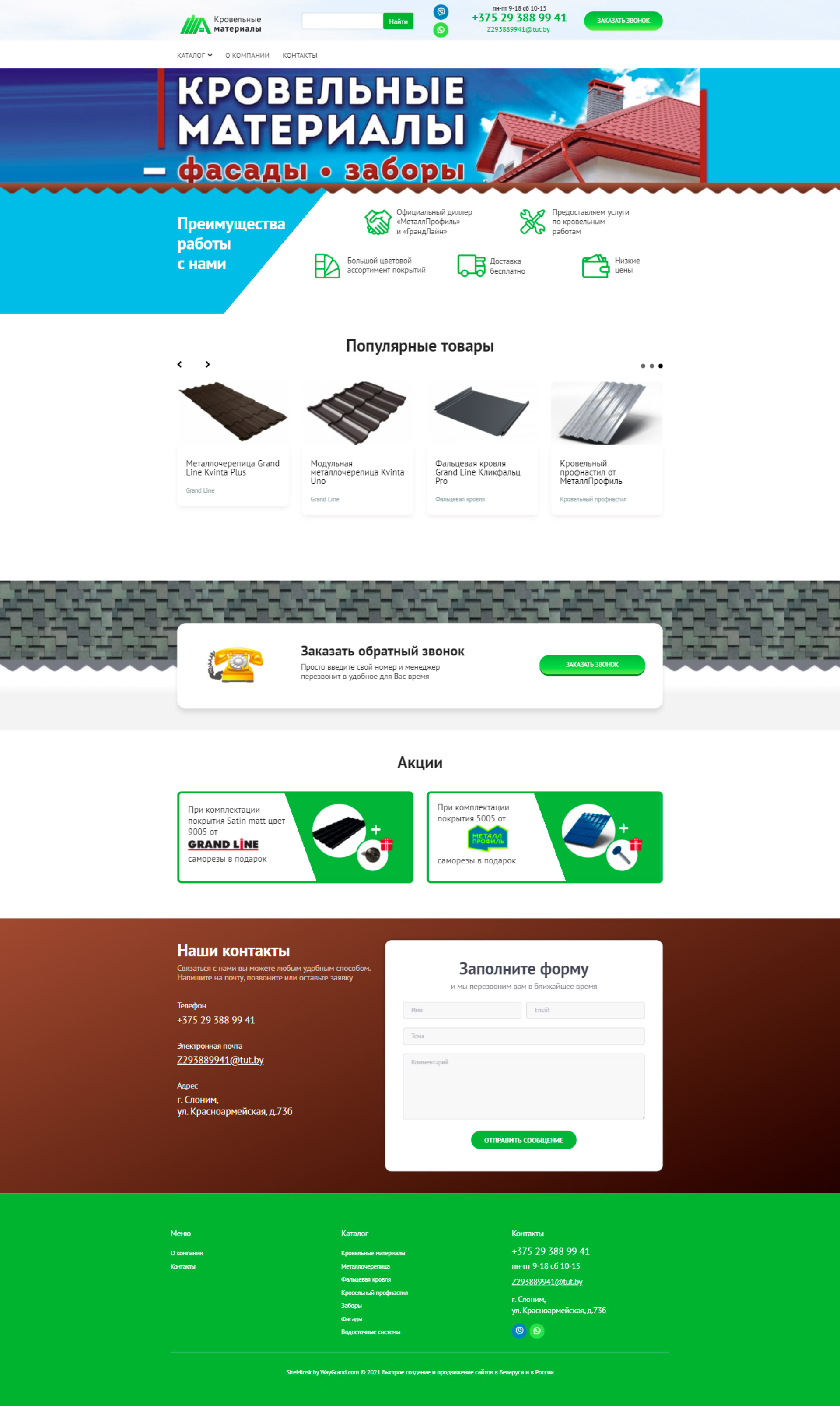 Закажите готовый продающий сайт визитка #324 в Барановичи «под ключ» на waygrand по выгодной цене: свёрстан, отрисован и готов к рекламе. Тематика шаблона «Кровельные материалы».